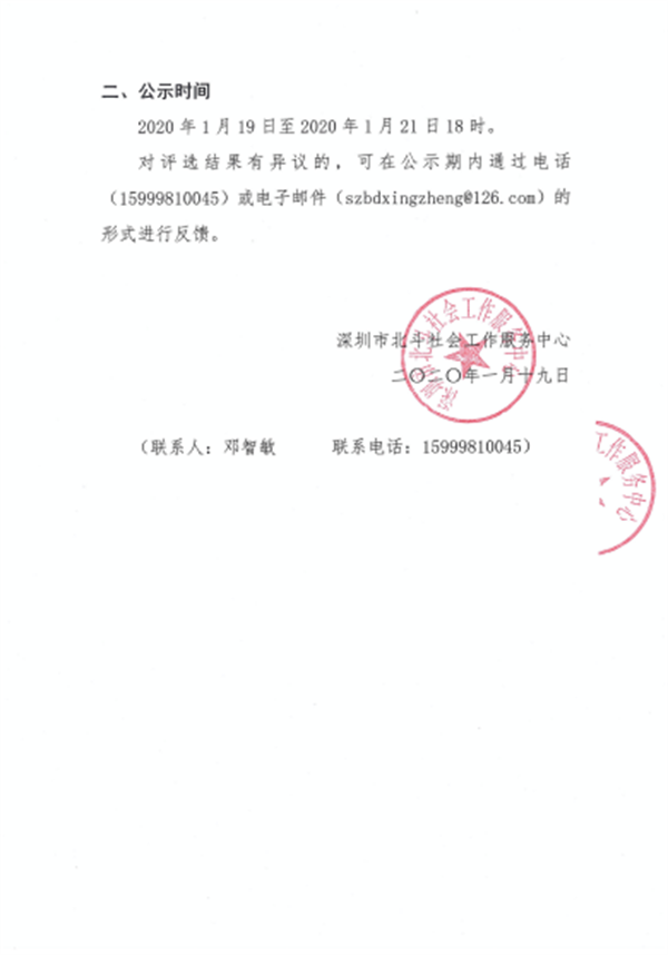 分类: 通知公告作者:北斗社工2020年1月19日 00:00文章导航上一页上一文章:2019年度滨江社区党群服务中心第四季度经费使用情况下一页下一文章:招聘丨正青春 一起拼相关文章深圳市北斗社会工作服务中心关于周幸华、林向活社工参加2025年度广东省高级社会工作师评审的公示2025年9月18日 18:00深北斗〔2025〕22号 关于公布2025年第一季度表彰结果(公示)2025年6月18日 16:03深北斗〔2025〕8号 关于公布2024年第四季度表彰结果的通知(公示)2025年4月8日 17:58深圳社会工作行业诚信自律倡议书2025年1月23日 19:39深北斗〔2024〕28号 关于公布2024年第三季度表彰结果的通知(公示)2024年12月13日 16:56深北斗〔2024〕25号 关于公布2024年第二季度表彰结果的通知(公示)2024年9月6日 17:00