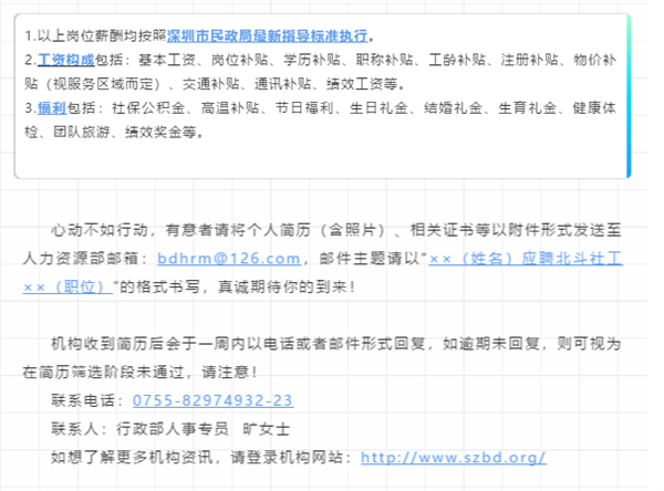 分类: 加入我们作者:北斗社工2020年6月18日 00:00文章导航上一页上一文章:招聘丨北斗,有你的诗和远方下一页下一文章:深北斗〔2020〕26号 2020年端午节放假通知相关文章北斗招聘|来北斗一起成长吧!2024年4月24日 09:10北斗招聘|投出你的简历吧!2024年4月18日 18:10北斗招聘|专项招聘!!!!2024年4月10日 20:30北斗招聘|请注意,最新招聘已发布!2024年4月3日 18:10北斗招聘|岗位已更新,速投!2024年3月27日 18:30北斗招聘|欢迎加入北斗大家庭呀!2024年3月1日 19:30