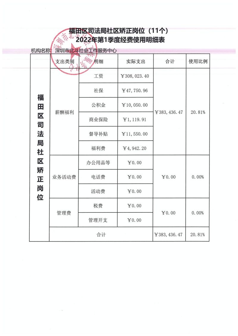 2022年第一季度福田区司法局社区矫正项目(11岗)经费使用明细