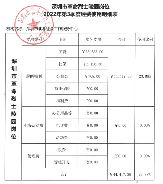 2022年第三季度深圳市革命烈士陵园岗位经费使用明细表