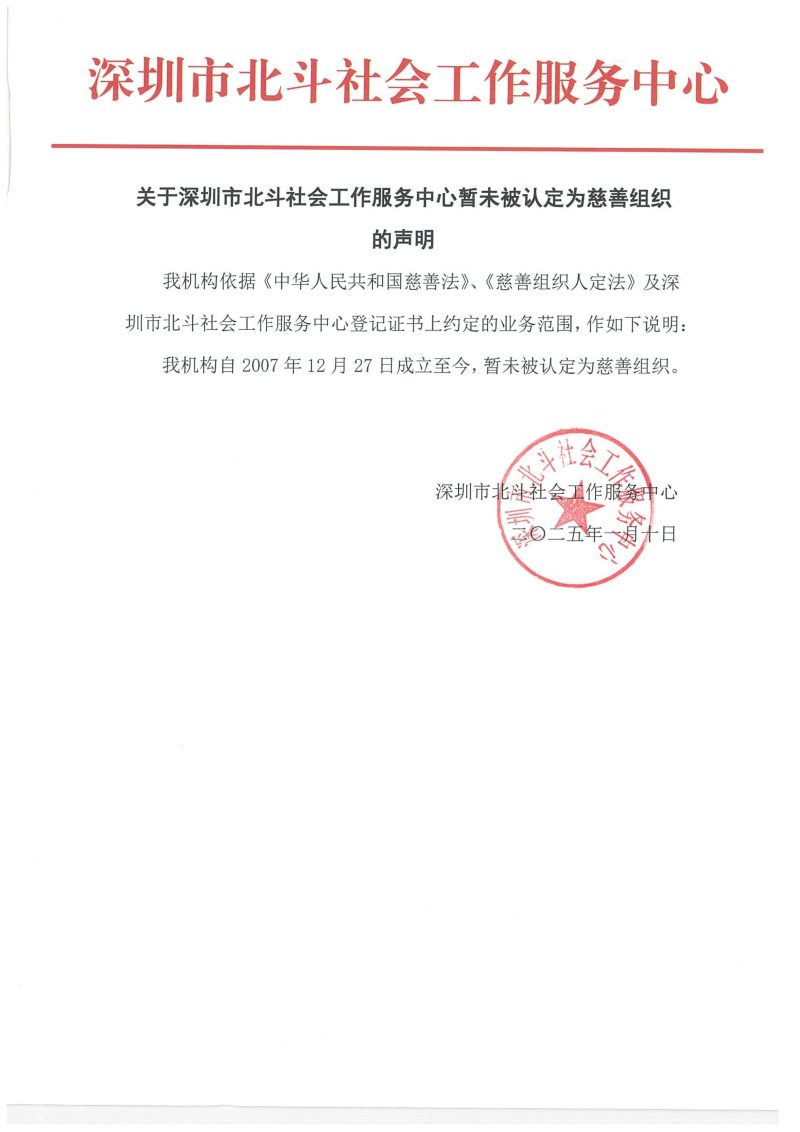 分类: 慈善组织认定声明, 未分类作者:北斗社工2025年1月12日 09:52文章导航上一页上一文章:关于深圳市北斗社会工作服务中心2024年下半年服务收费的声明下一页下一文章:2024年度深圳市北斗社会工作服务中心奖惩情况公示相关文章关于深圳市北斗社会工作服务中心2025年上半年是否被认定为慈善组织的声明2025年6月30日 18:54深圳市北斗社会工作服务中心2024年政府购买服务情况统计2025年1月10日 09:11关于深圳市北斗社会工作服务中心2024年上半年是否被认定为慈善组织的声明2024年6月30日 16:28关于深圳市北斗社会工作服务中心2023年下半年是否被认定为慈善组织的声明2024年1月10日 18:18关于深圳市北斗社会工作服务中心2023年上半年是否被认定为慈善组织的声明2023年6月30日 19:22关于深圳市北斗社会工作服务中心2022年下半年是否被认定为慈善组织的声明2023年1月10日 10:30