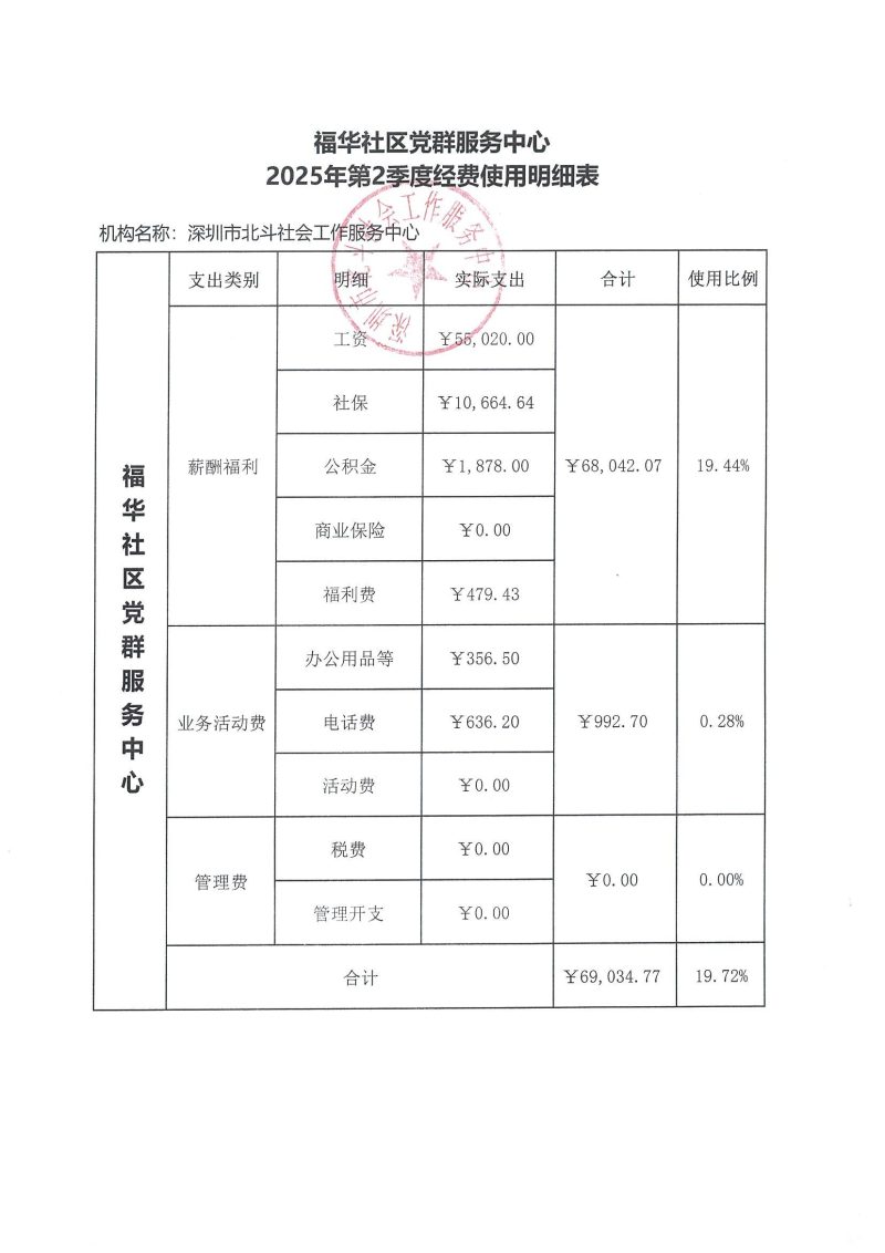 福华社区党群服务中心2025年第2季度经费使用明细表