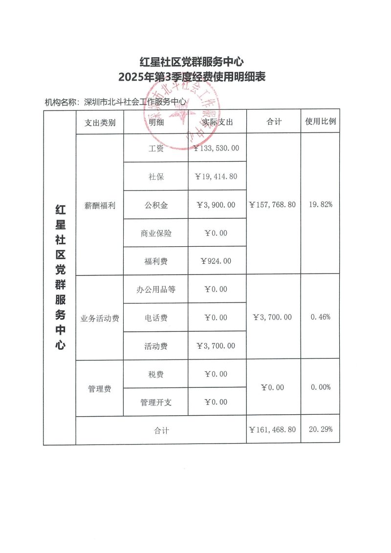 红星社区党群服务中心2025年第3季度经费使用明细表