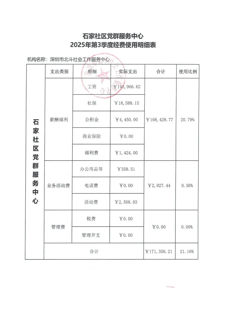 石家社区党群服务中心2025年第3季度经费使用明细表