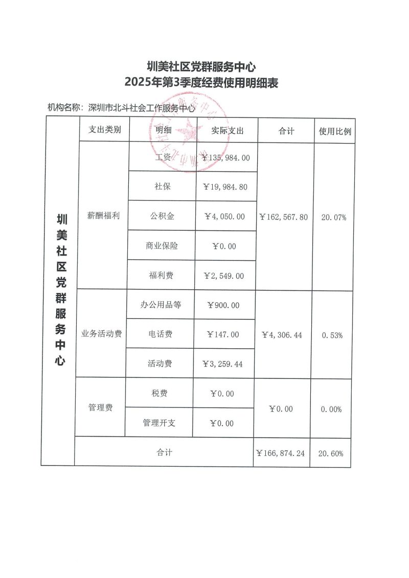 圳美社区党群服务中心2025年第3季度经费使用明细表