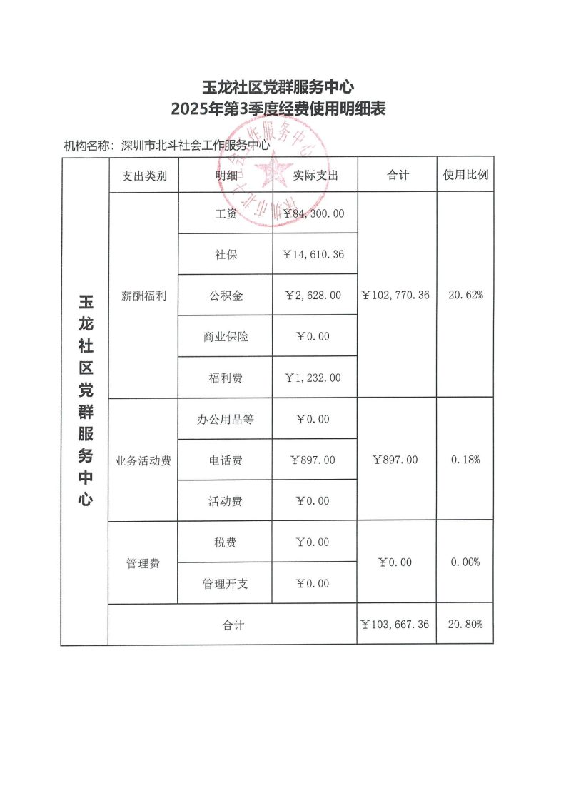 玉龙社区党群服务中心2025年第3季度经费使用明细表