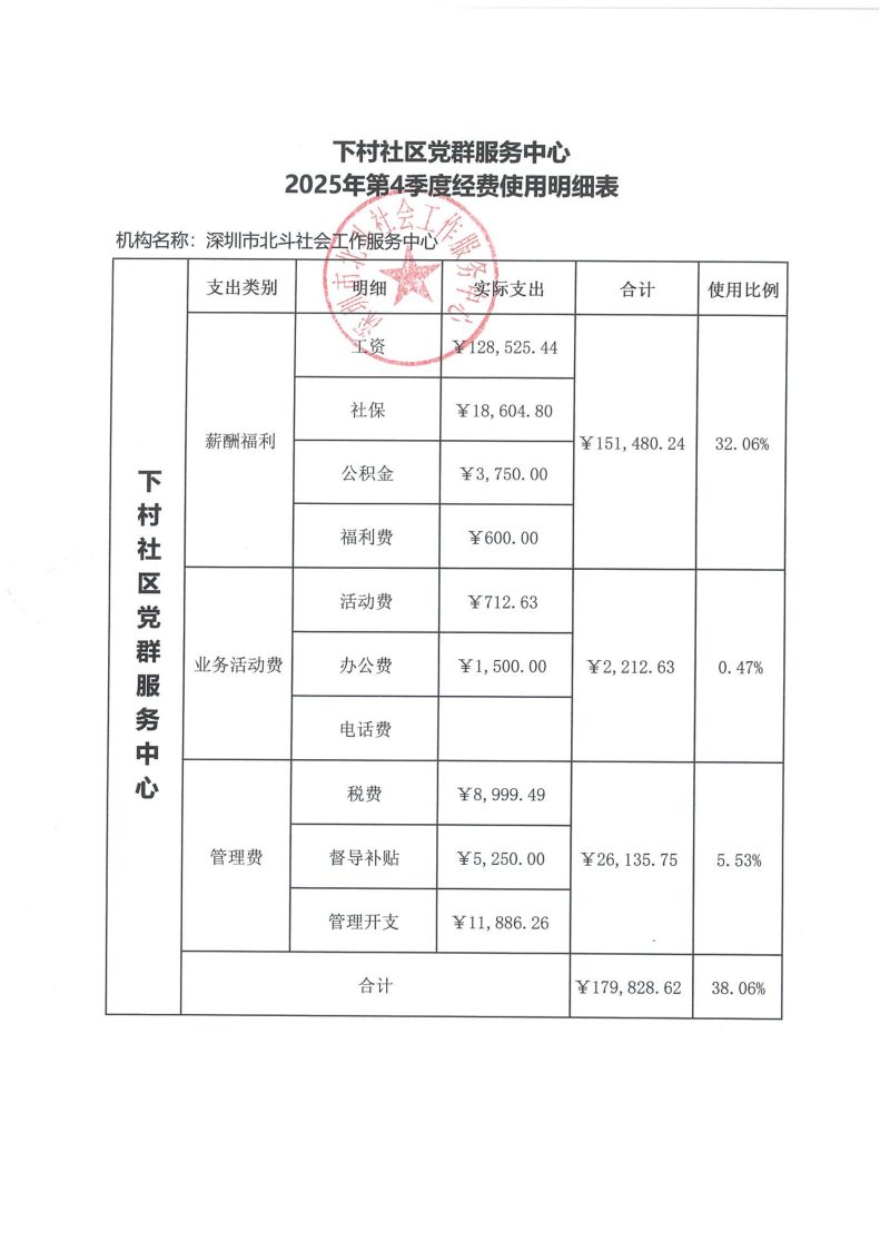 下村社区党群服务中心2025年第4季度经费使用明细表
