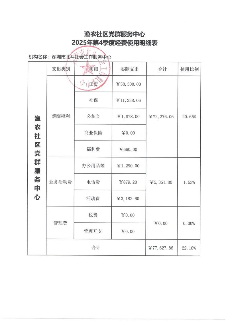 渔农社区党群服务中心2025年第4季度经费使用明细表