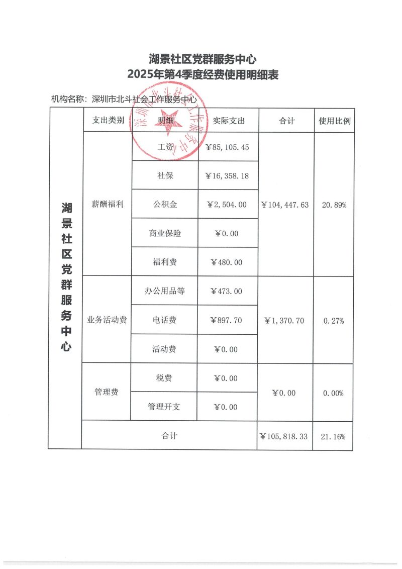 湖景社区党群服务中心2025年第4季度经费使用明细表
