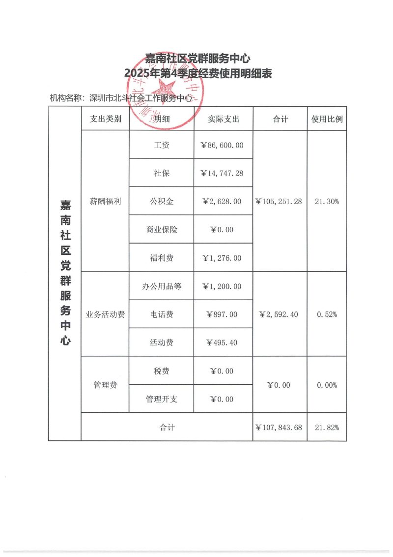 嘉南社区党群服务中心2025年第4季度经费使用明细表