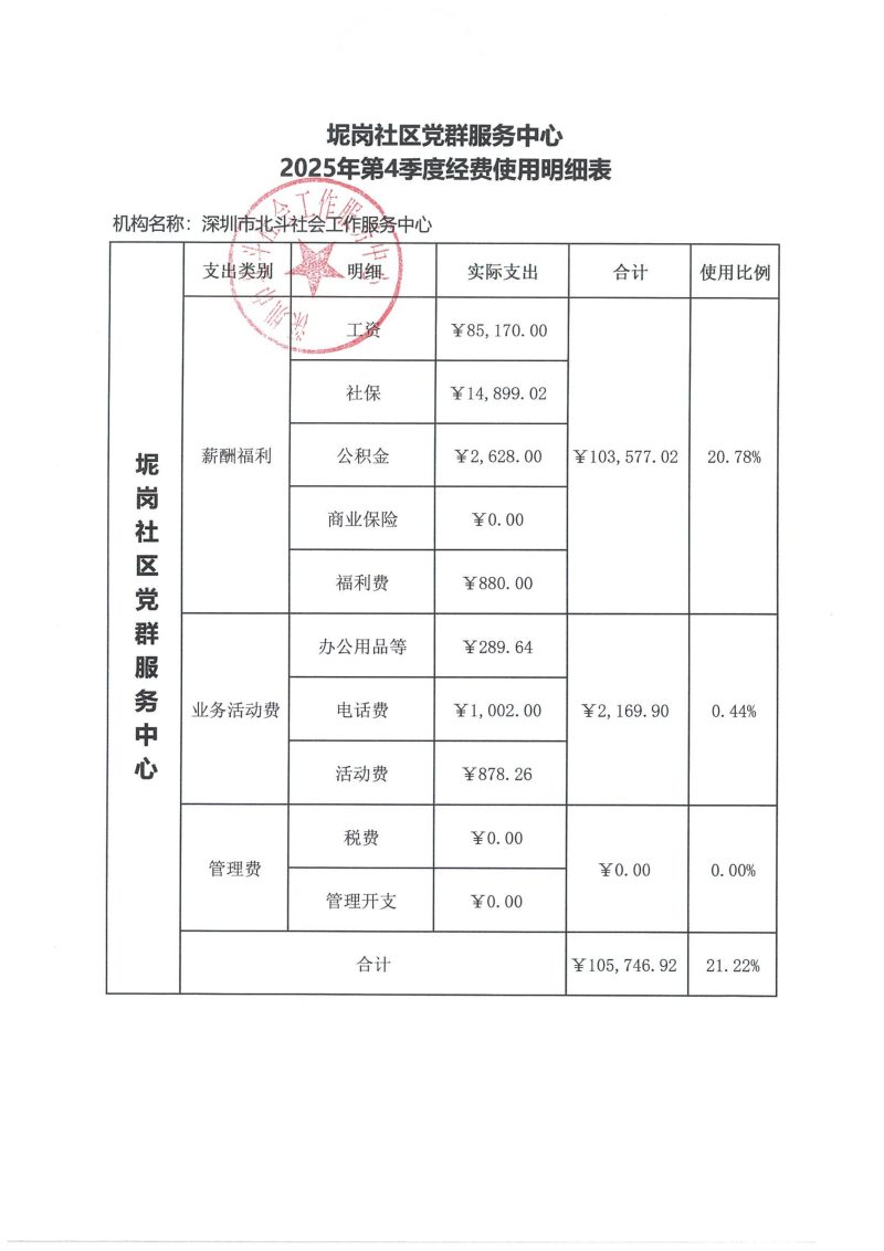 坭岗社区党群服务中心2025年第4季度经费使用明细表