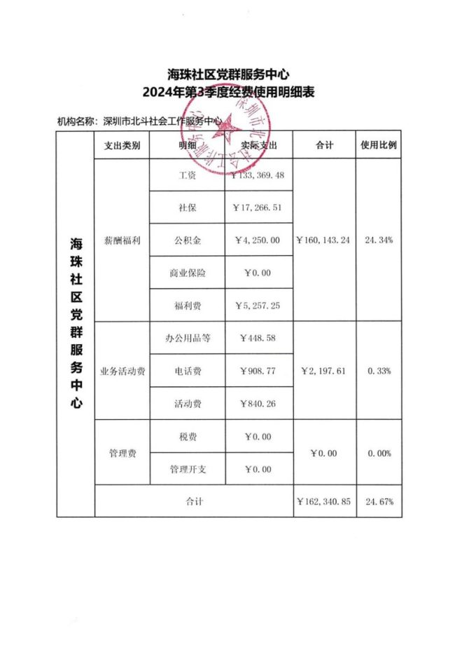 海珠社区党群服务中心2024年第3季度经费使用明细表