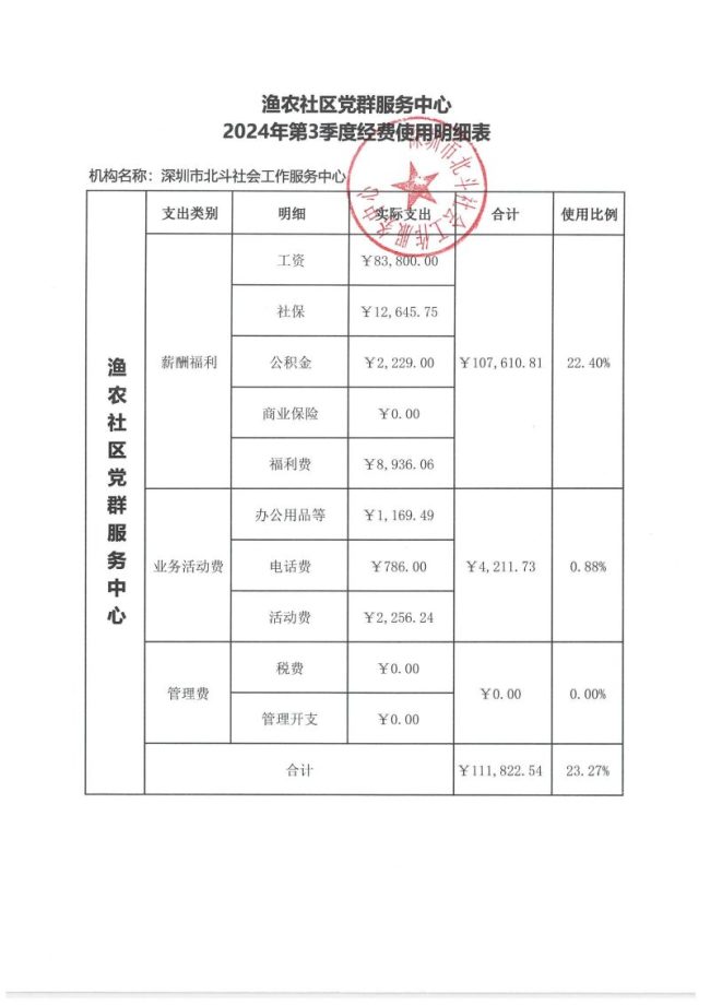 渔农社区党群服务中心2024年第3季度经费使用明细表