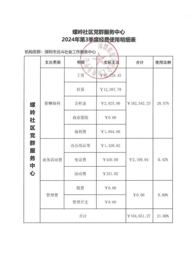 螺岭社区党群服务中心2024年第3季度经费使用明细表
