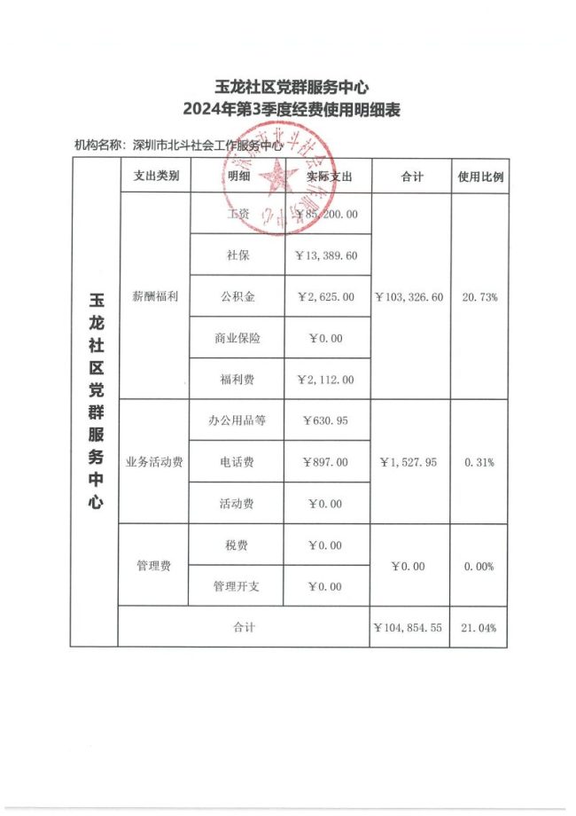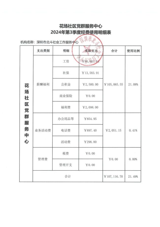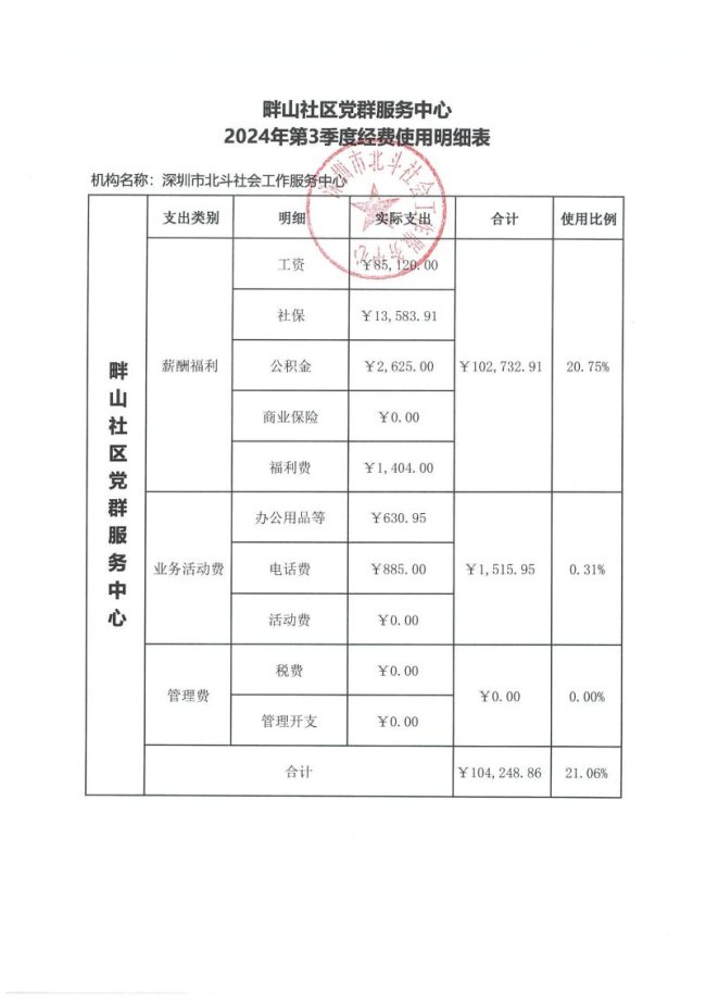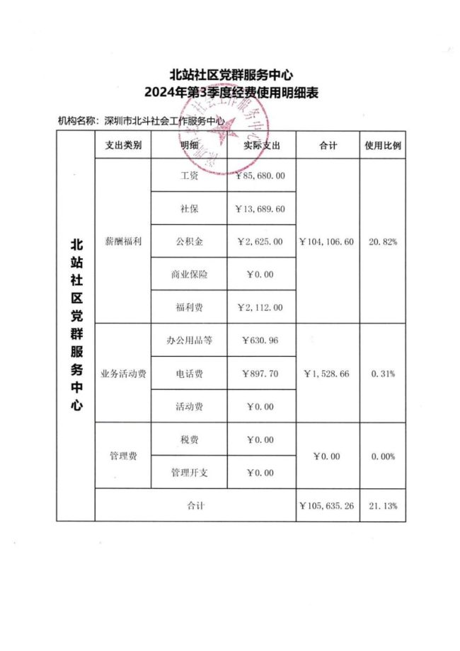 北站社区党群服务中心2024年第3季度经费使用明细表
