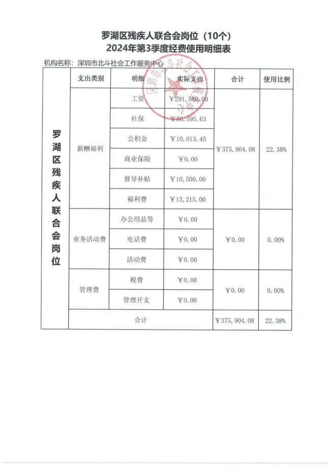 罗湖区残疾人联合会岗位(10个)2024年第3季度经费使用明细表