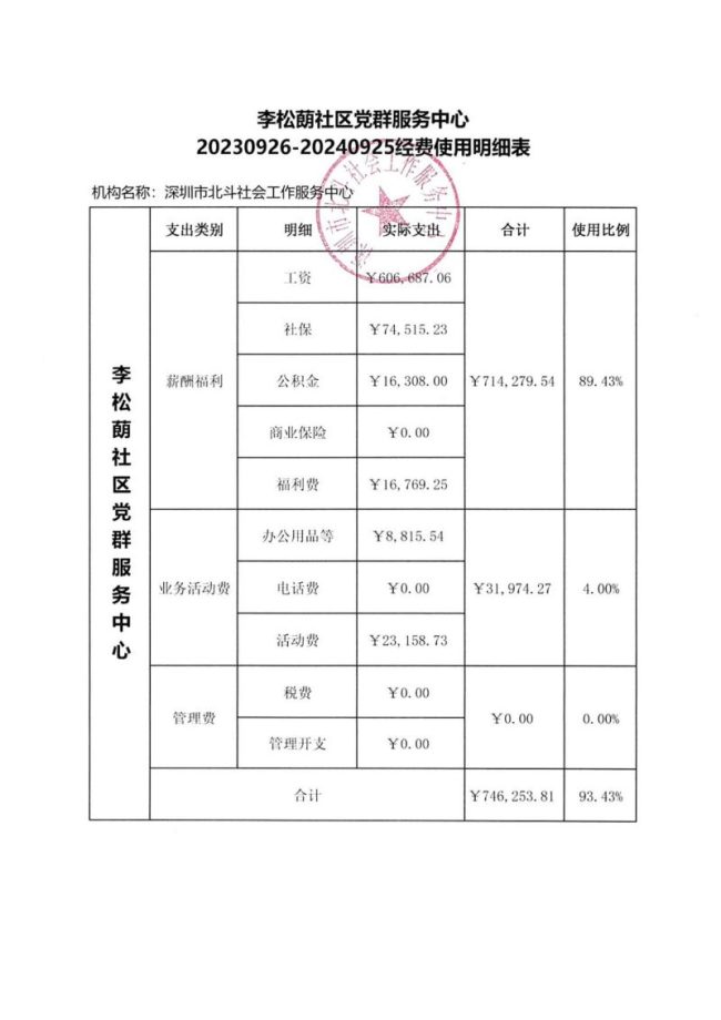李松蓢社区党群服务中心20230926-20240925经费使用明细表