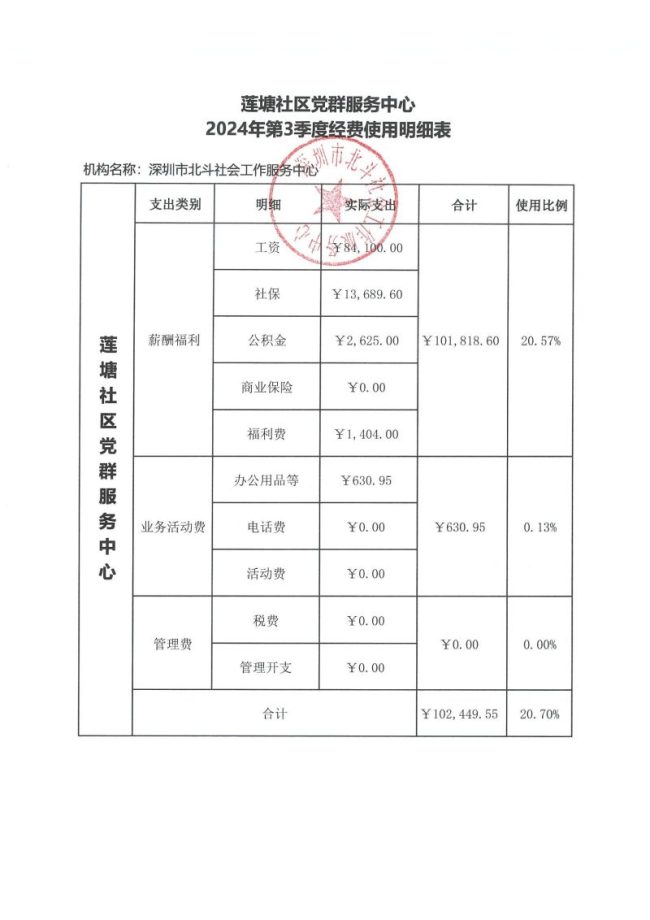 莲塘社区党群服务中心2024年第3季度经费使用明细表