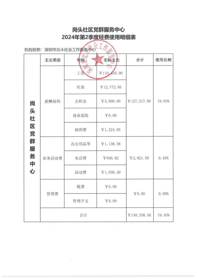岗头社区党群服务中心2024年第2季度经费使用明细表
