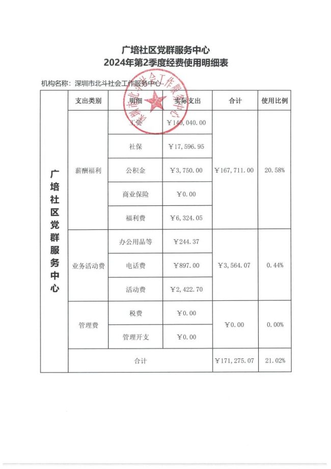 广培社区党群服务中心2024年第2季度经费使用明细表