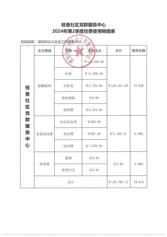 桂香社区党群服务中心2024年第2季度经费使用明细表