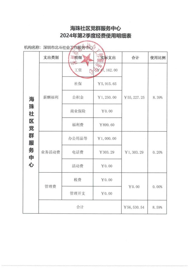 海珠社区党群服务中心2024年第2季度经费使用明细表