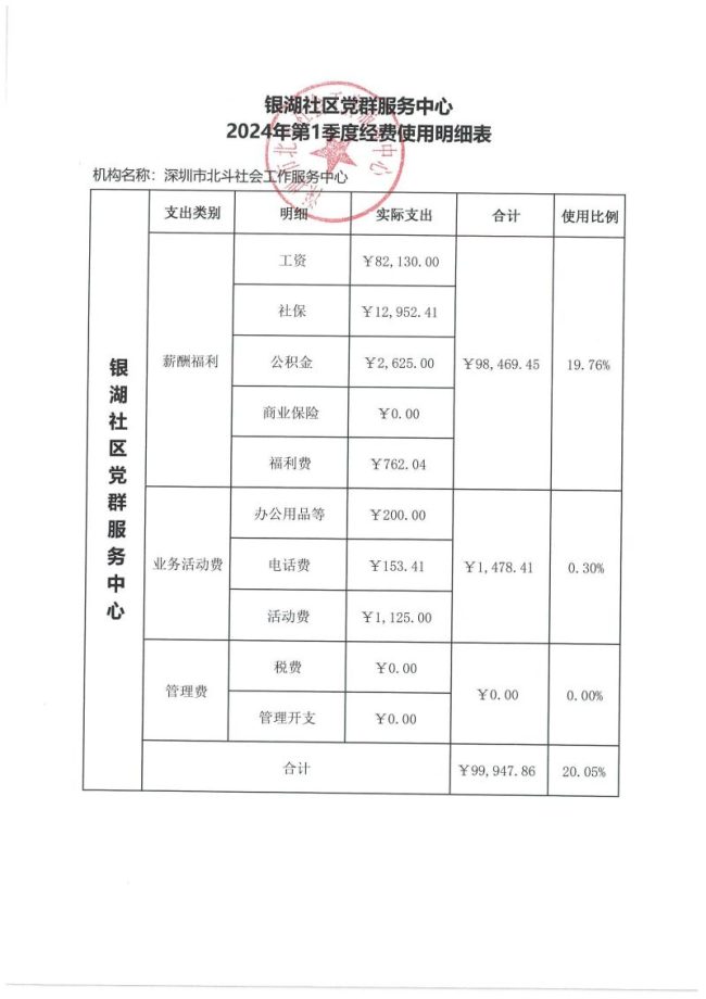 银湖社区党群服务中心2024年第一季度财务公示