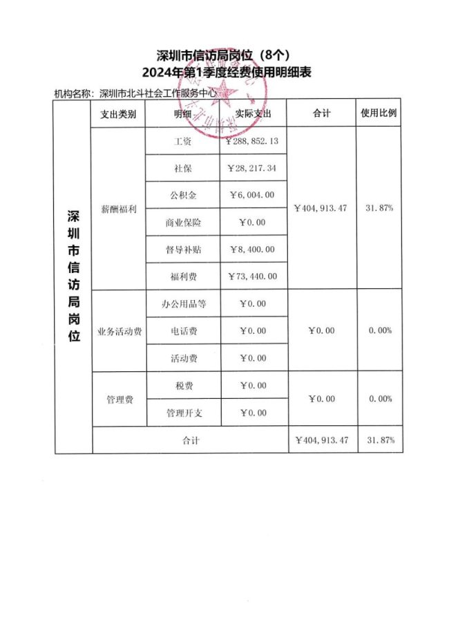 深圳市信访局岗位(8个)2024年第1季度经费使用明细表