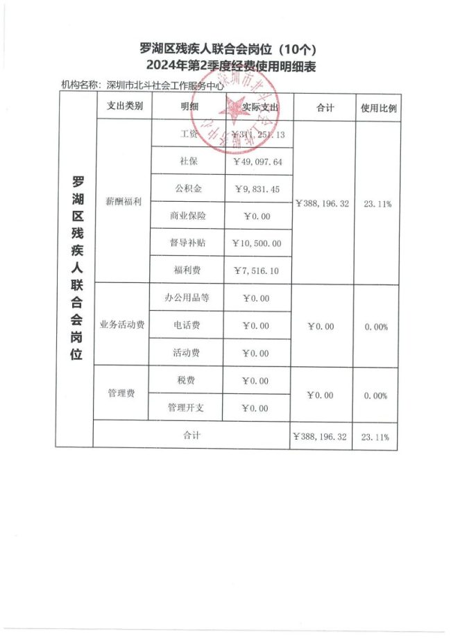 罗湖区残疾人联合会岗位(10个)2024年第2季度经费使用明细表