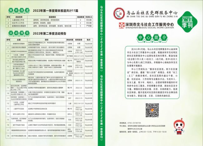 2022年马山头社区党群服务中心第一季度季刊