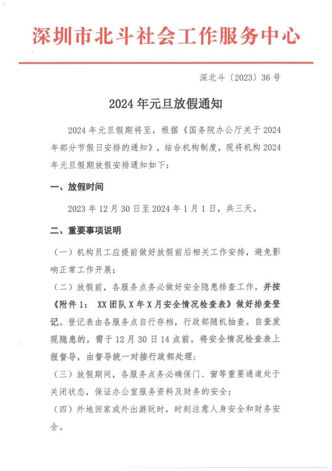 深北斗〔2023〕36号 2024年元旦放假通知