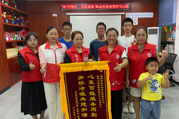 8月17日上午,居住在畔山社区的林女士及3名学生作为居民代表专程来到畔山社区社工办公室,为社区暑期专业的服务送上锦旗以示感谢。