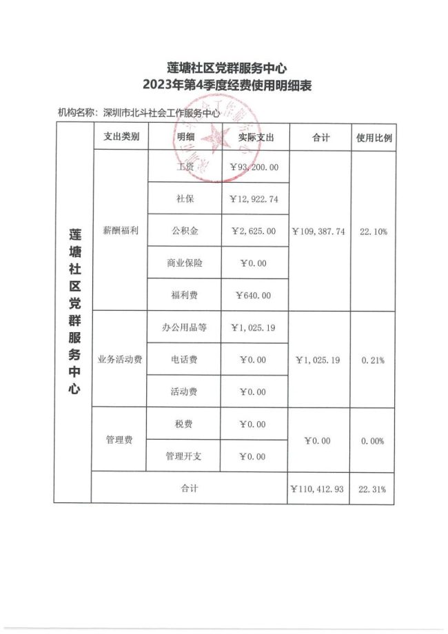 莲塘社区党群服务中心2023年第四季度财务公示