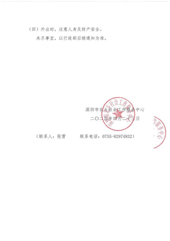 深北斗〔2024〕12号 2024年劳动节放假通知