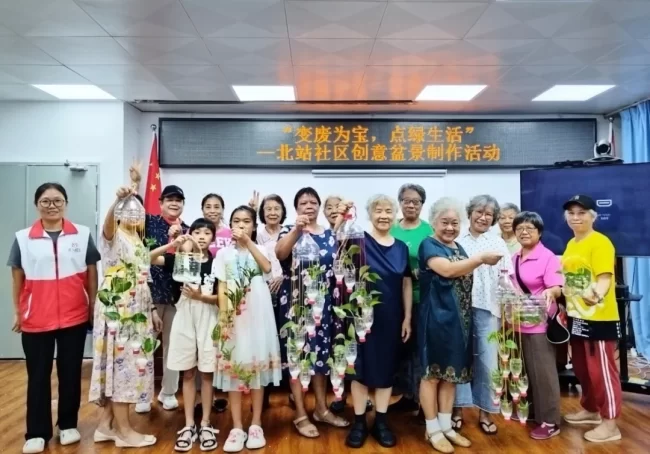 北斗·服务速递丨“变废为宝,点绿生活”北站社区创意盆景制作活动