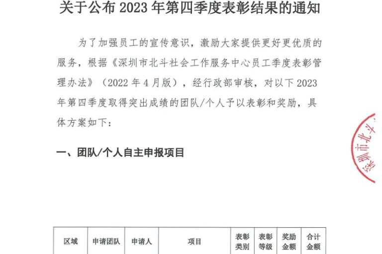 深北斗〔2024〕8号 关于公布2023年第四季度表彰结果的通知(公示) 通知公告2024年3月25日 17:45 详情请查看附件: 深北斗〔2024〕8号 关于公布2023年第四季度表彰结果的通知(公示) Read more