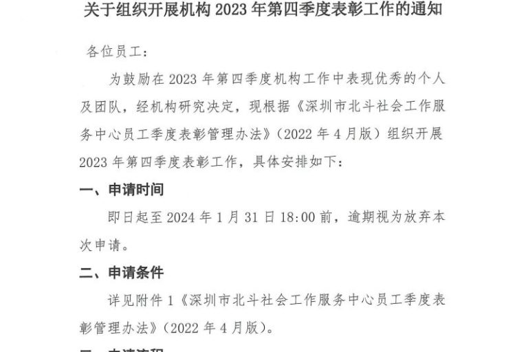 深北斗〔2023〕34号 关于公布2023年第三季度表彰结果的通知(公示) 通知公告2023年12月21日 17:00 附件:深北斗〔2023〕34号 关于公布2023年第三季度表彰结果的通知(公示) Read more