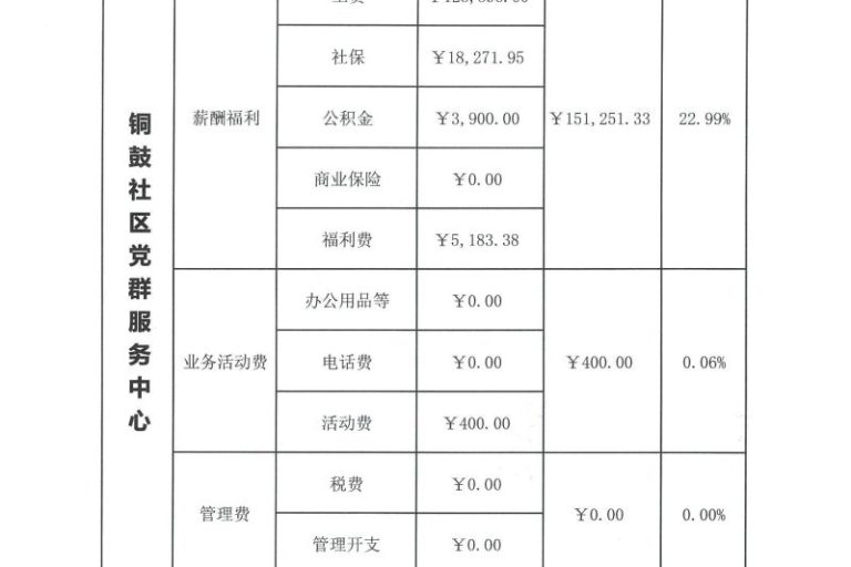 铜鼓社区党群服务中心2024年第3季度经费使用明细表