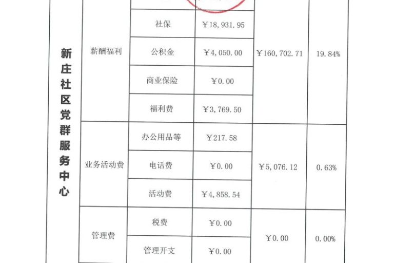 新庄社区党群服务中心2024年第3季度经费使用明细表