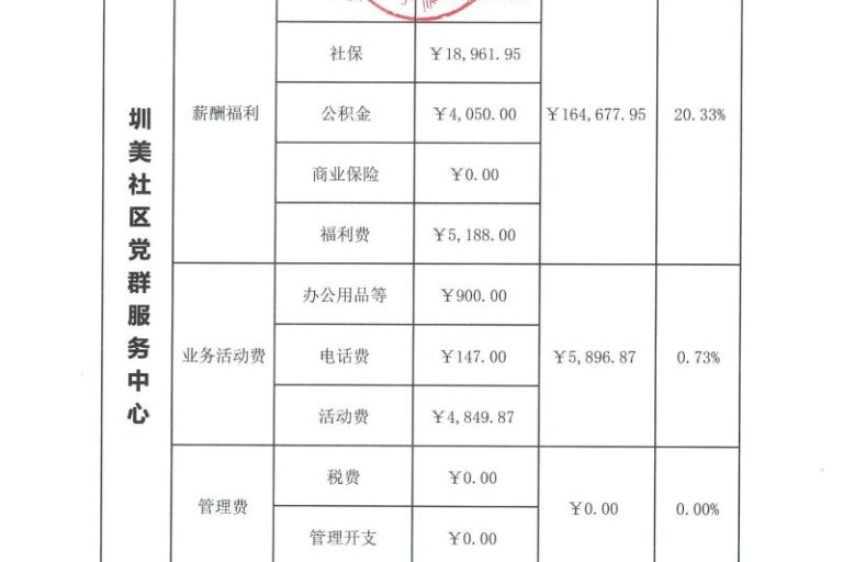 圳美社区党群服务中心2024年第3季度经费使用明细表