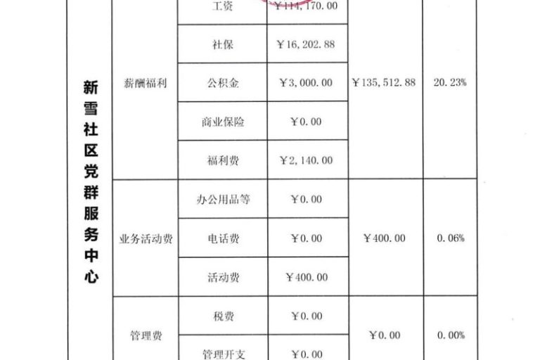新雪社区党群服务中心2024年第3季度经费使用明细表