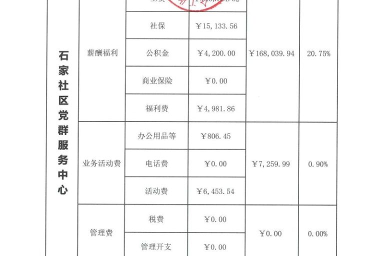 石家社区党群服务中心2024年第3季度经费使用明细表
