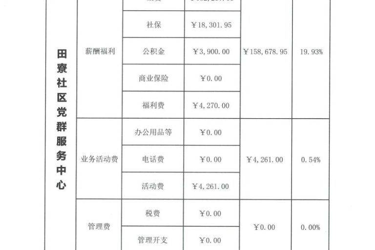 田寮社区党群服务中心2024年第3季度经费使用明细表