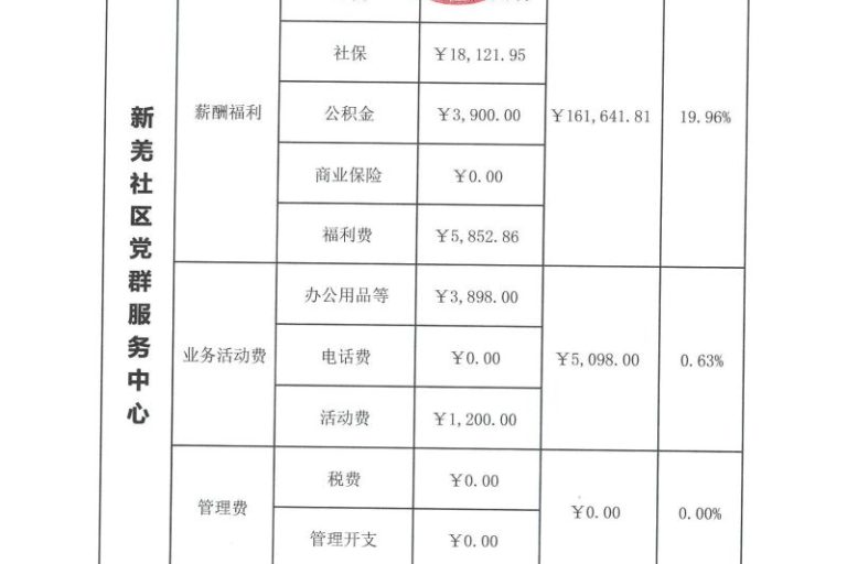 新羌社区党群服务中心2024年第3季度经费使用明细表