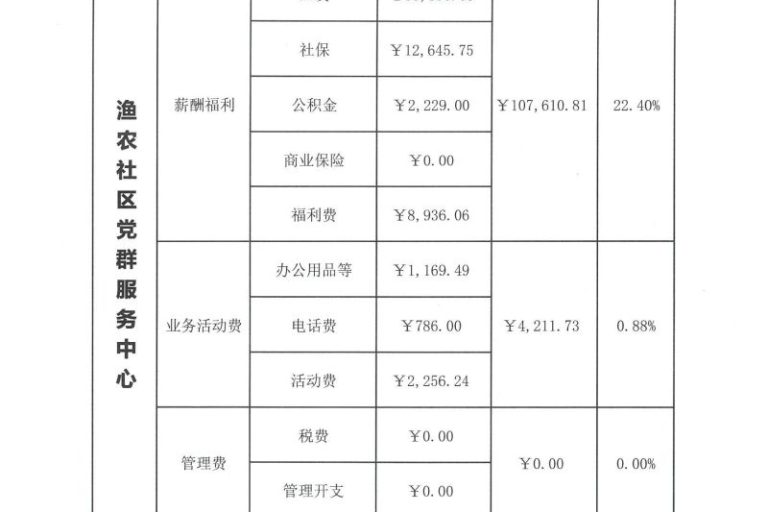 渔农社区党群服务中心2024年第3季度经费使用明细表
