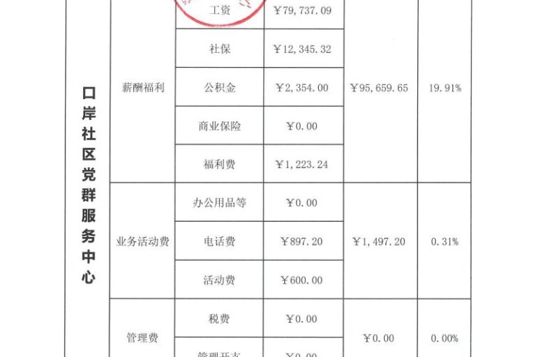 口岸社区党群服务中心2024年第2季度经费使用明细表