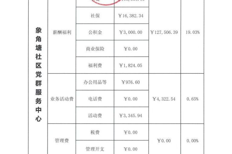 象角塘社区党群服务中心2024年第2季度经费使用明细表