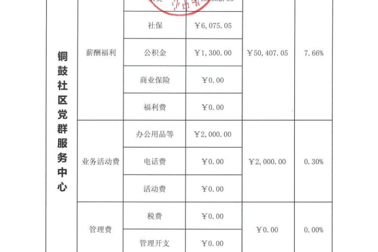 铜鼓社区党群服务中心2024年第2季度经费使用明细表