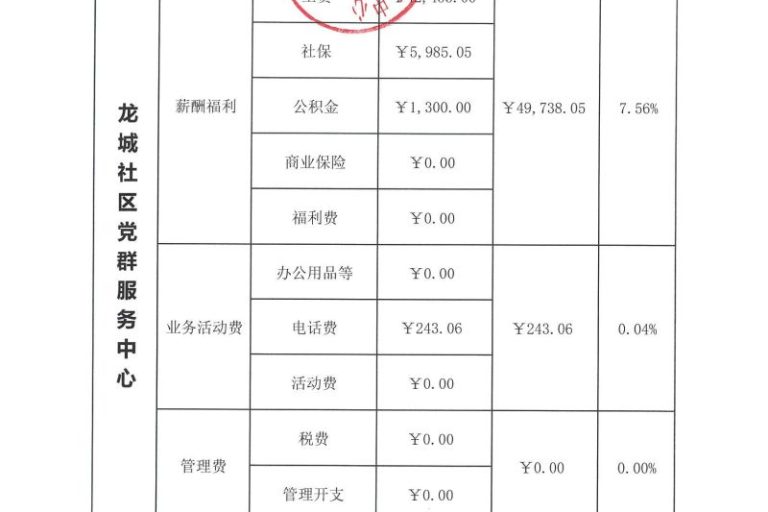 龙城社区党群服务中心2024年第2季度经费使用明细表