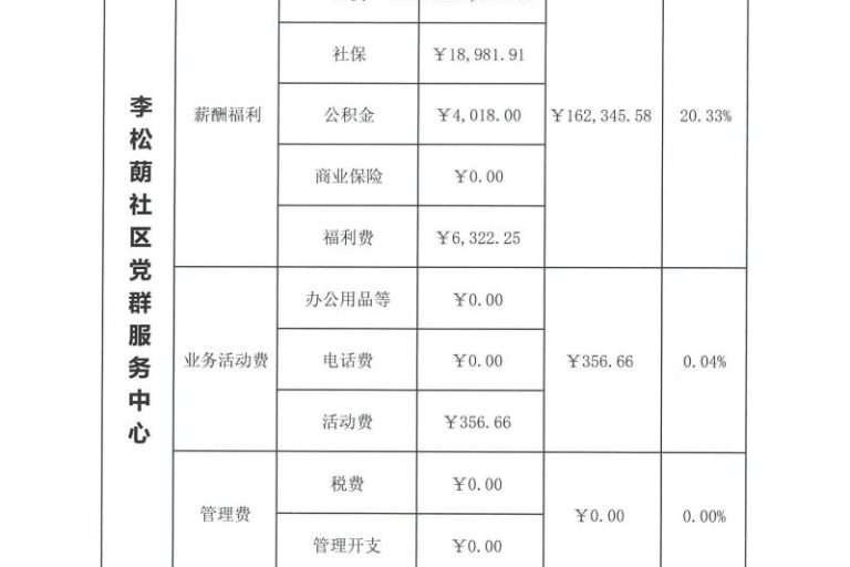 李松蓢社区党群服务中心2024年第2季度经费使用明细表